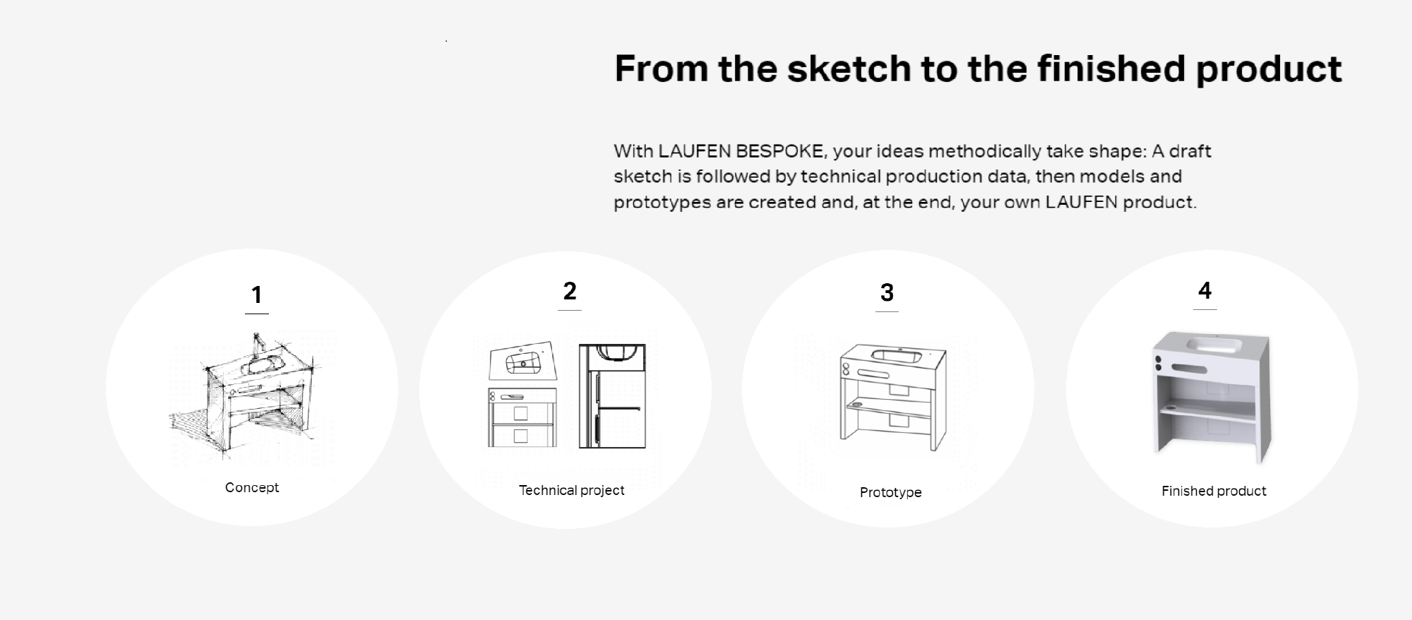 Dans le cadre du processus, LAUFEN BESPOKE propose un pack de service complet incluant une assistance technique: nous réalisons une étude de faisabilité sur la base des premiers croquis et données, avant de produire les premiers modèles et prototypes. LAUFEN propose des accessoires assortis au produit fini BESPOKE ainsi qu’un service de livraison et un service clientèle complets.